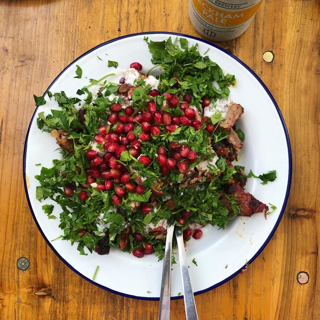 - Roasted lamb shoulder – with a harissa and spice rub; slow-cooked until it falls off the bone.